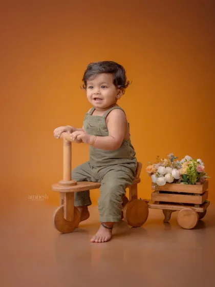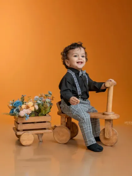 We specialize in capturing the joy and personality of children through creative themed photoshoots. Our sessions include both studio and outdoor photography, featuring playful props like toy cars, musical instruments, and decorative elements.
