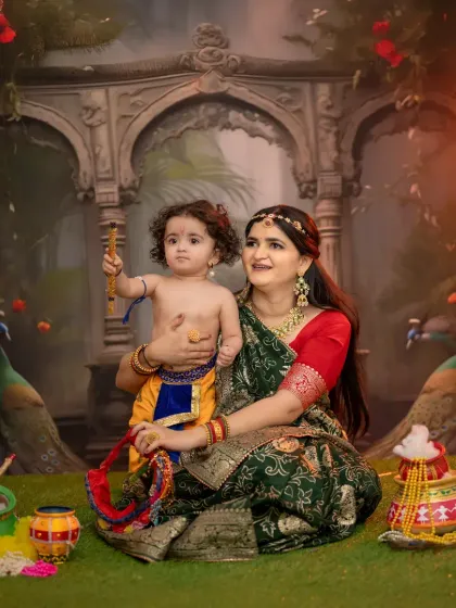 - Mom & baby portraits, plus special themes like Janmashtami, and three generation portraits