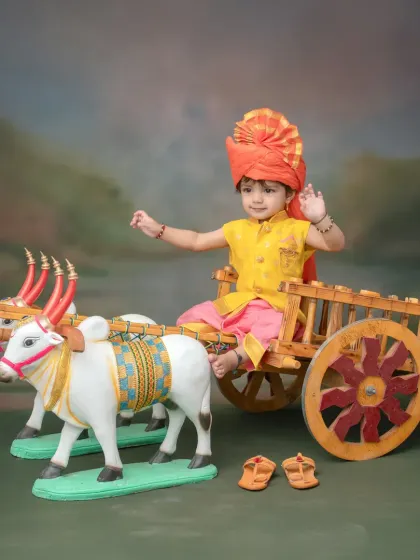 - Bal Shivba: Your child as young Shivaji Maharaj - royal getup, throne, and toy talwar.