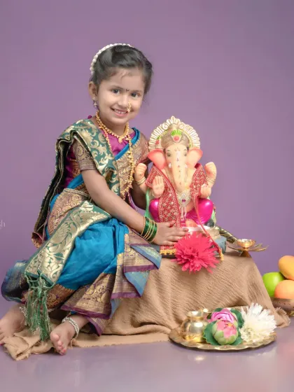I do ready-to-go Indian festival and cultural photoshoots in my Kolhapur studio, handling all costumes and props so you just show up and get detailed, authentic memories.