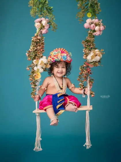 - Janmashtami: Dress your baby as little Krishna, flute, butter, jhula and all. Mother-baby portraits here are super cute.