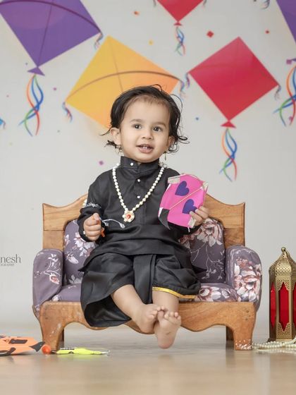 I capture the joy of Makar Sankranti with photoshoots for both babies and couples. For babies, the theme includes black outfits, miniature kites, and firki, while couples can pose in coordinated traditional attire with beautiful sugar jewelry (halwyache dagine). All props and costumes are available at my studio.