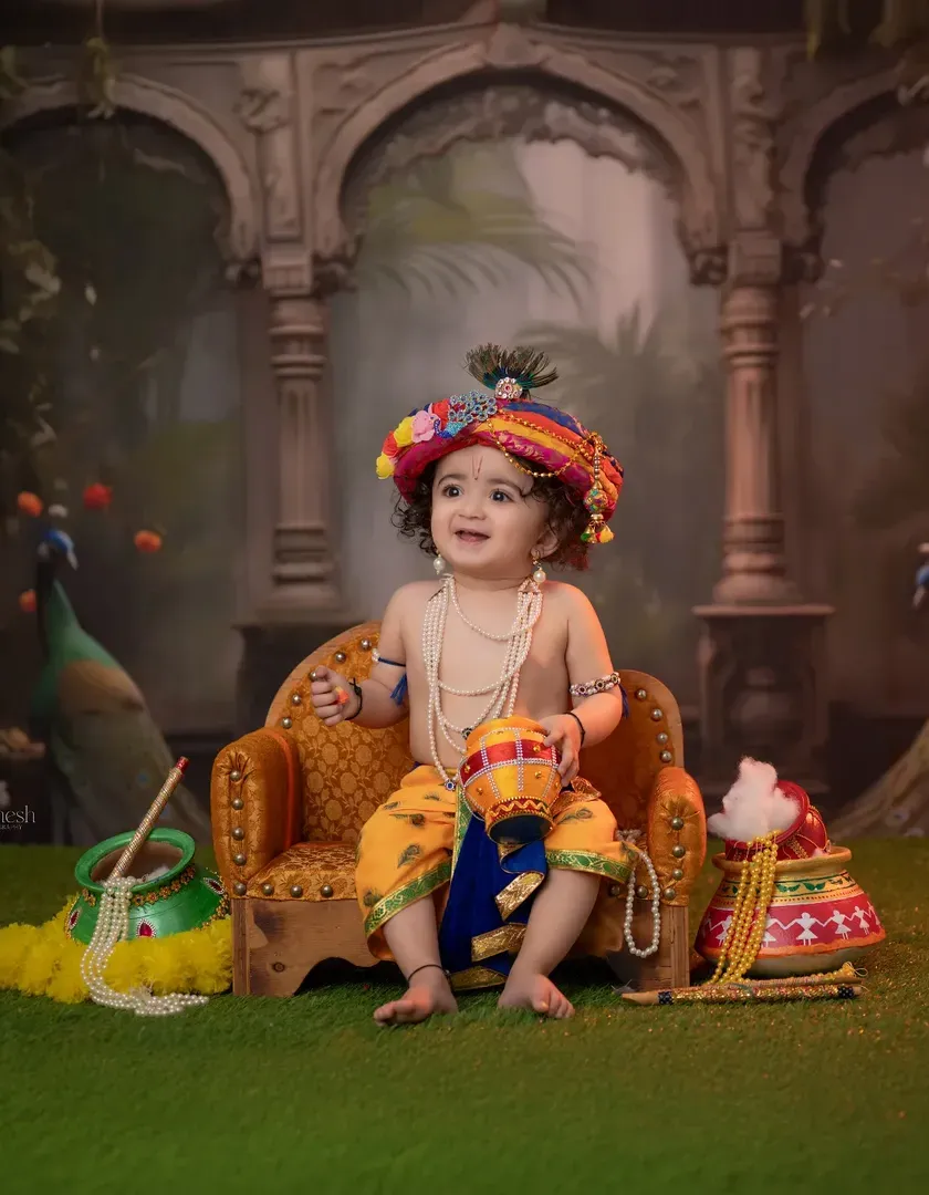 A first look at my most popular and vibrant cultural photoshoots. This is a snapshot of the unique, all-inclusive studio experiences I offer to celebrate our traditions, from the divine aura of Janmashtami to the royal spirit of Bal Shivba. Each session is fully styled with authentic costumes and props.