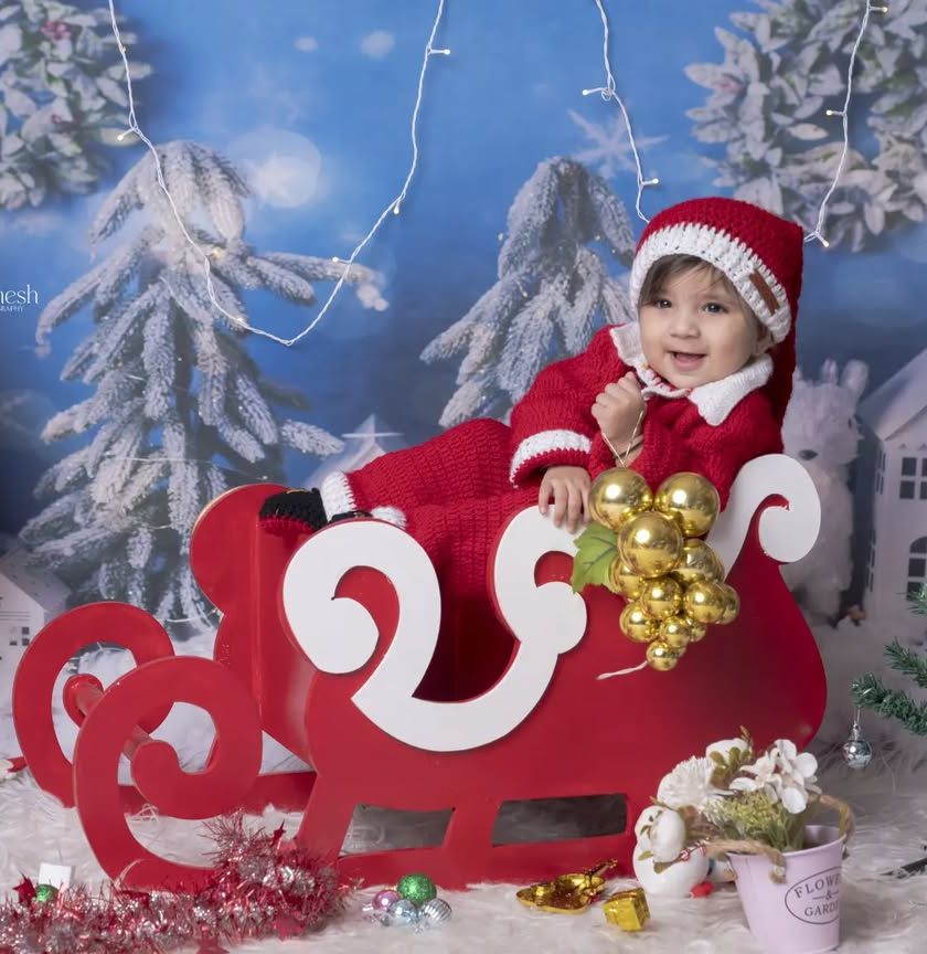 Beyond traditional Indian festivals, I also offer themed photoshoots for holidays like Christmas and Diwali. For Christmas, I have a winter wonderland setup with a sleigh and Santa outfits. For Diwali, the studio is lit up with diyas, lanterns, and festive decor.