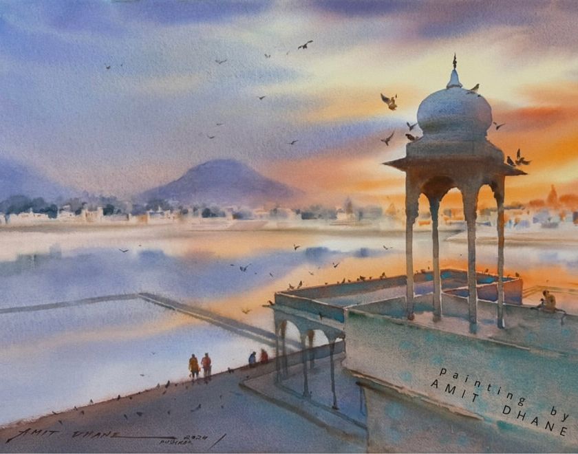 I love painting outdoors, or "en plein air," to capture the true spirit of a location. This collection features watercolour and oil landscapes from my travels across India, from the serene ghats of Varanasi and Pushkar to the rugged forts of Maharashtra. Each painting is an attempt to bottle the unique light, mood, and atmosphere of the scene.
