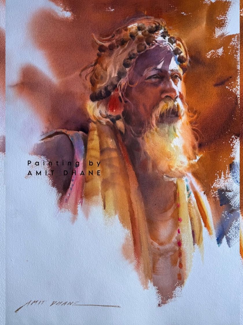 I am fascinated by the diverse faces and stories of people across India. This collection features portraits of sadhus, villagers, and everyday people I've encountered. Using watercolour, acrylic, and gouache, I aim to capture the character, emotion, and life etched into their faces, creating more than just a likeness.