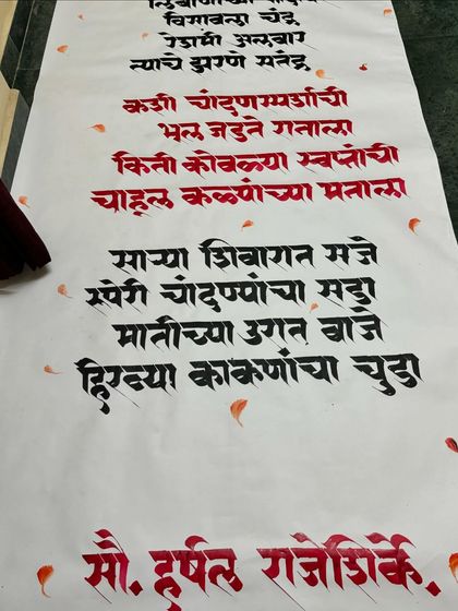Before focusing on painting, my great passion was "akshar lekhan," or the art of lettering. My father, also an artist, was my first teacher. This collection showcases my work in Marathi calligraphy, a skill I return to with great joy. This piece was created for Gulmohar Day on a 15 foot paper roll.