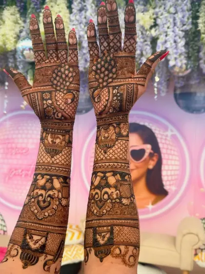 With 15 years of experience and a team of 25+ artists, we create all types of mehndi designs for weddings and festivals. We serve Delhi NCR and also travel for destination weddings.