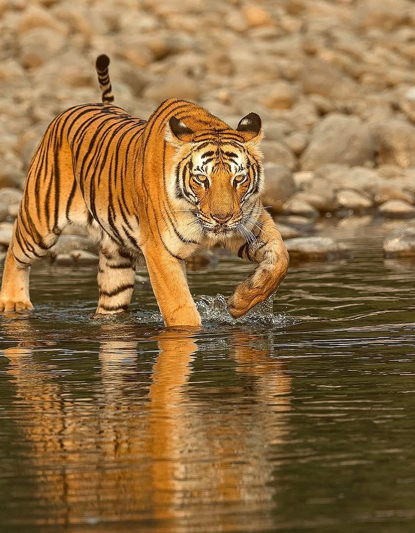 Jim Corbett National Park offers a different magic. Its dense Sal forests, vast grasslands, and the Ramganga river create a lush, wild backdrop. My tours here focus on capturing animals within these grand landscapes, from tigers crossing riverbeds to the gentle giants of the forest, the elephants.
