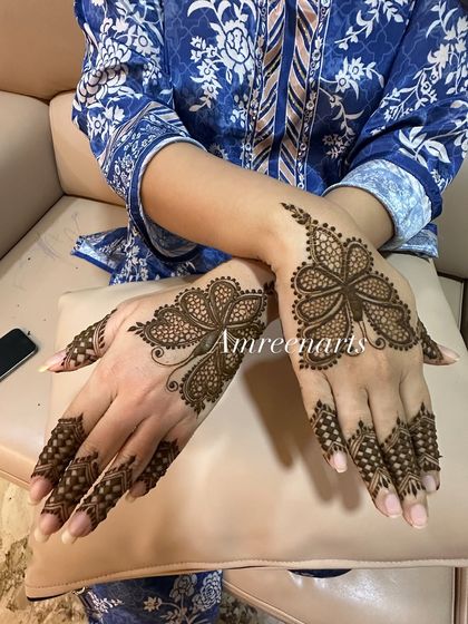 Hey, I'm Amreen. Mehendi isn’t just lines for me, it’s memories and masti (fun) mixed with tradition. Every swirl I make, I’m thinking of your story, your big day, your smile. Mumbai is home but my mehendi cones have seen airports more than my passport! Europe, UAE, wherever brides want a bit of ‘henna happiness’, I’m there, making skin a canvas for love and laughter.