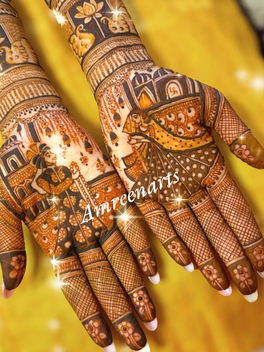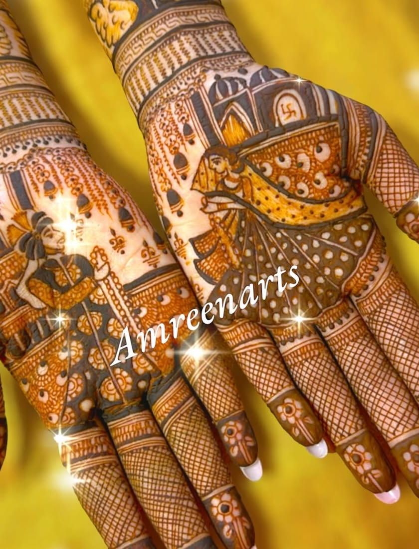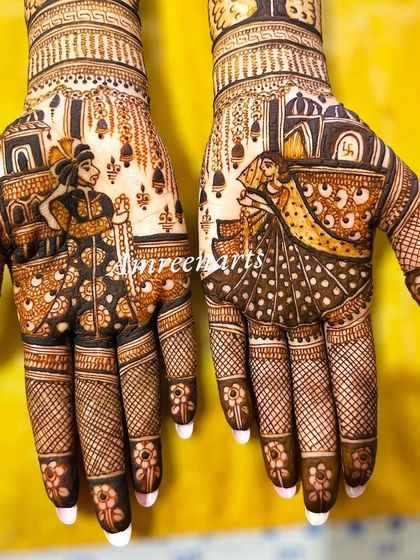 Your mehandi can be a canvas for your personal story. I specialize in creating custom figurative designs, including portraits of the couple, depictions of special moments, names, dates, and meaningful symbols.
