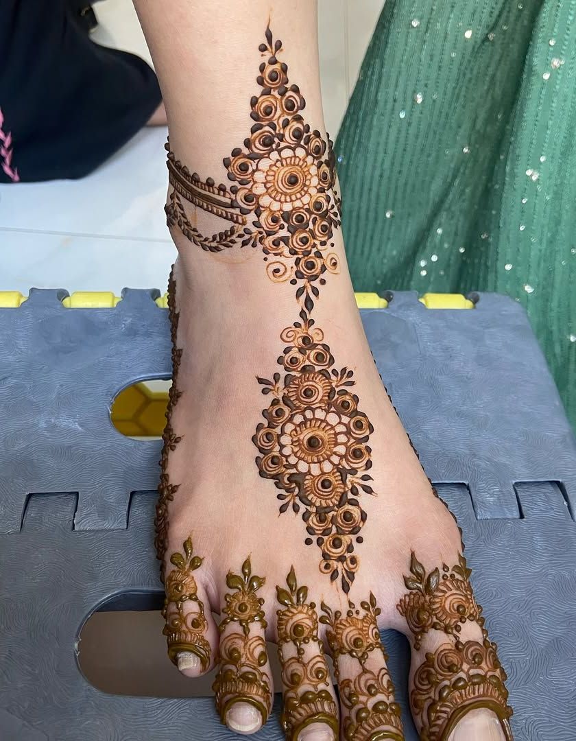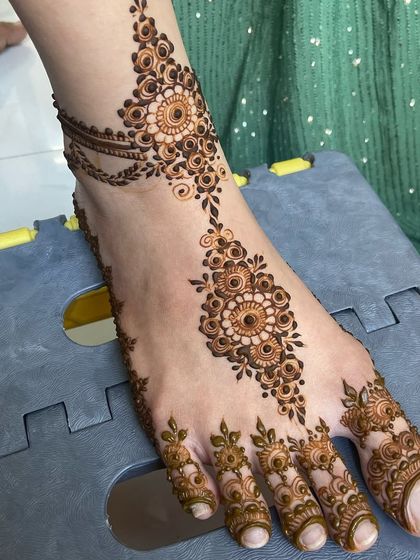 Complete your engagement or bridal look with detailed mehendi for your feet. I offer designs ranging from simple, elegant patterns to full coverage that complements your hand henna.