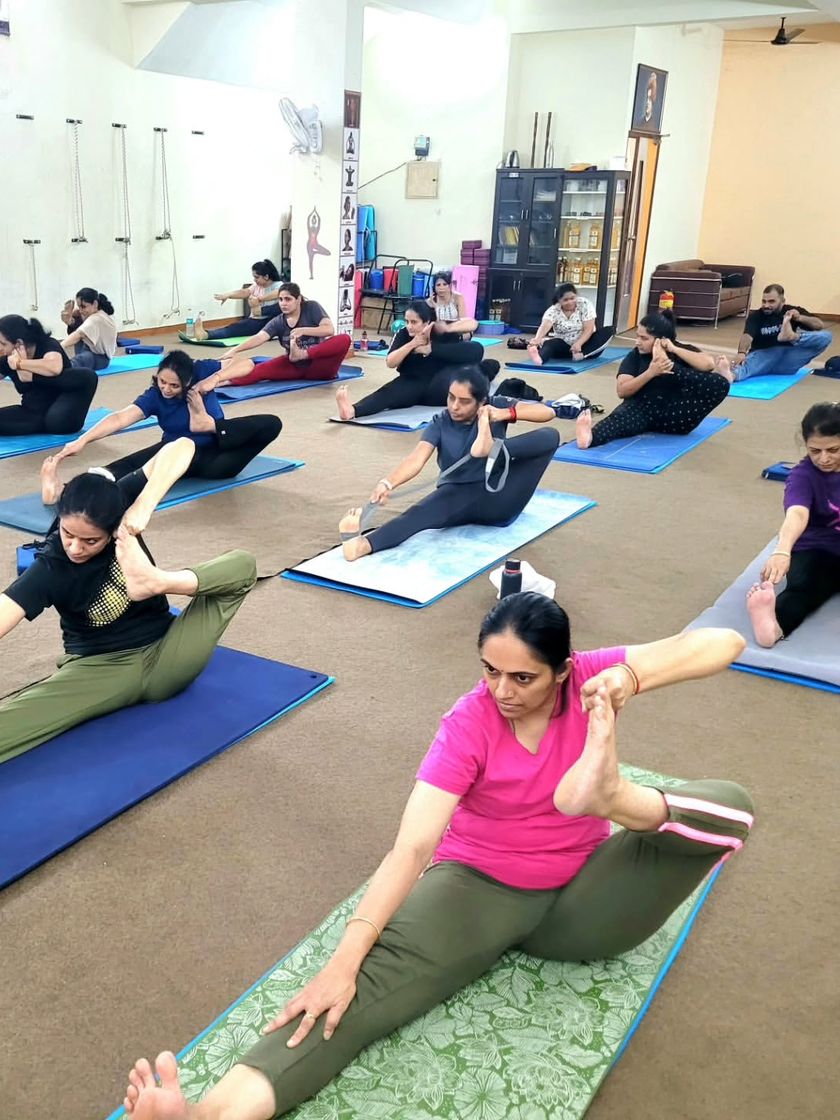 Our classes are held in our Noida studio and online, with hybrid sessions connecting everyone. We focus on correct alignment, practical teaching skills, and hands-on adjustments in a supportive group environment.