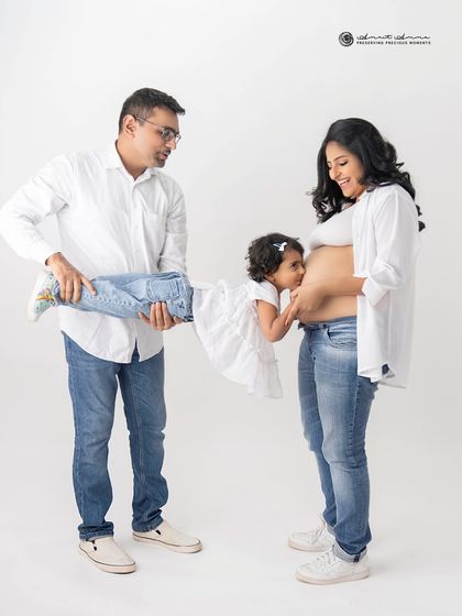 - Maternity: Best between 28-34 weeks pregnant. You, your partner, siblings, pets - sab aa sakte ho (everyone can join). Studio, outdoors, or at home, your call. Fancy maternity gowns available, or bring your own touch with baby shoes, ultrasound pics, whatever feels right.