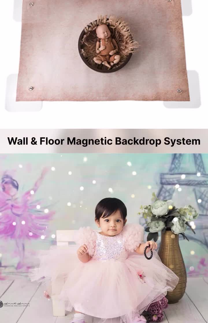 I designed the Floor System specifically for ground-level photography. Its powerful magnets pull the fabric taut across the floor, giving you a perfectly smooth, wrinkle-free surface that is essential for newborn posing, sitter sessions, and detailed product flat lays.