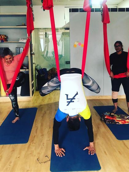 Therapeutic Aerial Yoga - First to bring Unnata aerial yoga in Gurgaon. Great for decompressing spine, back pain, and aerial yoga for spinal injuries.