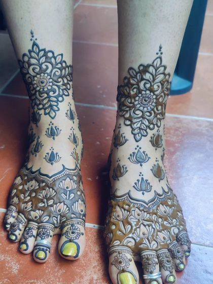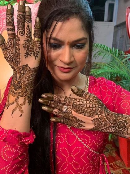 Hey, I'm Anam. Mehendi is my forever wala pyaar (true love). It’s not just kaam (work) for me, it’s my art! I started with family - even my sister-in-law’s a mehendi artist, toh family ka hi chakkar hai (so it runs in the family). I make my own organic mehendi, that smell and deep stain after 2-3 days, uff, best feeling! I travel anywhere in Bangalore and Mysore for your special moments.