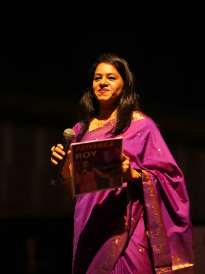 I’m MC Dr. Priyanka Roy, scientist by day, entertainer by night. My PhD may be in microbiology, but the stage is where I really come alive. For me, events aren’t just formalities - they’re meant to be lived, felt, and remembered. Are you ready for masti? Ek baar zor se bolo "Yes!" (Give me a loud yes!)