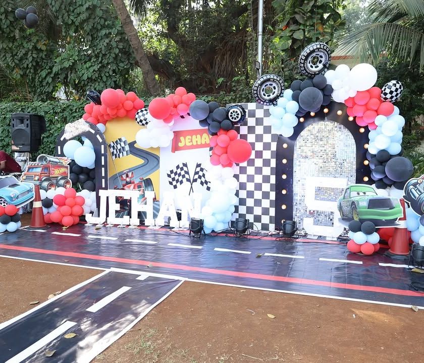 For the little adventurer, I design parties themed around travel and racing. These events feature everything from hot air balloon backdrops and airport-style entrances to interactive car wash stations and mini go-kart tracks.