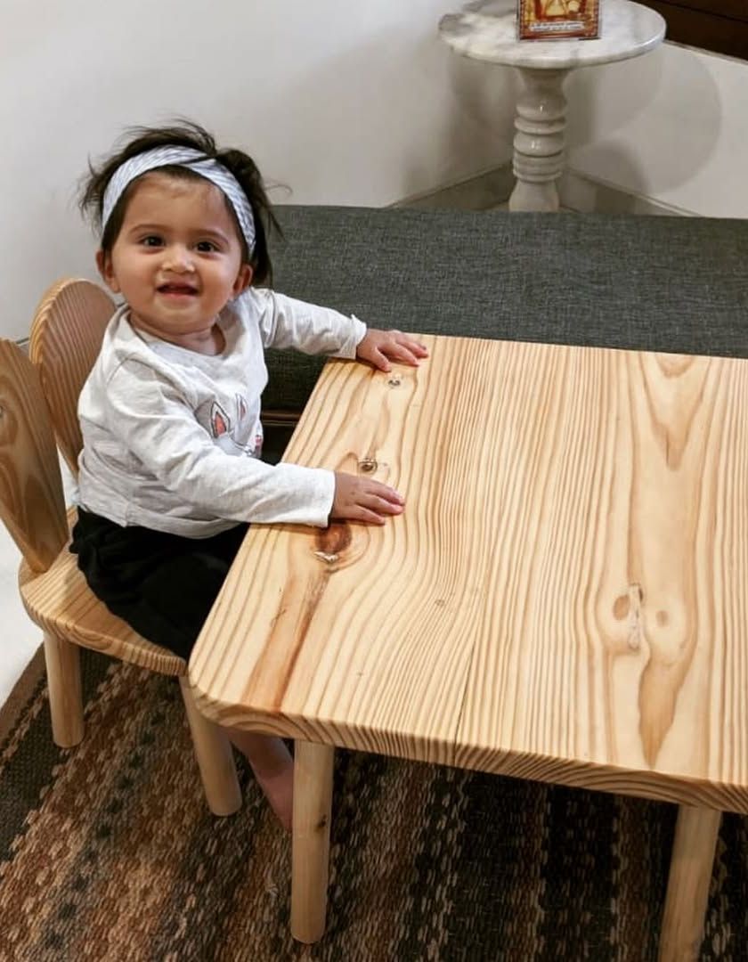Perfectly sized for little ones, I create handcrafted bunny, elephant, and house-shaped chairs from natural wood. These can be paired with matching tables and personalized with your child's name to create their very own activity corner.