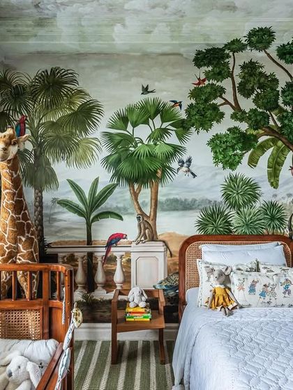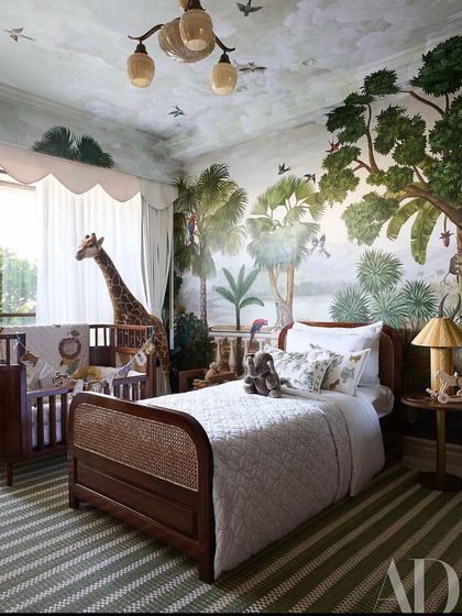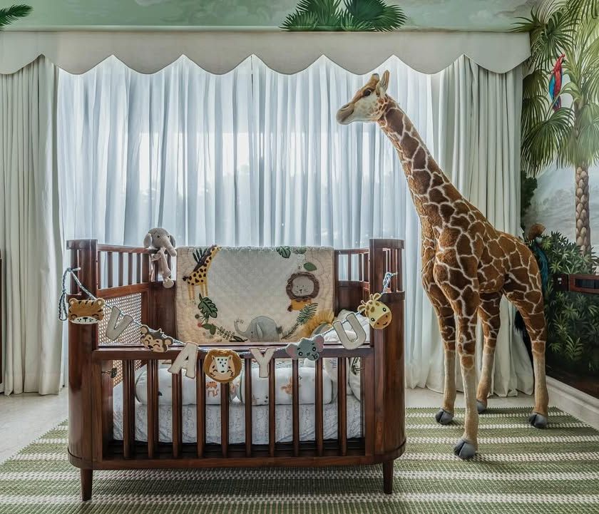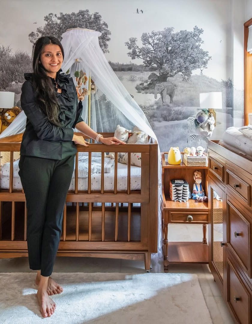 I had the absolute joy of designing this special nursery for Sonam Kapoor Ahuja's son, Vayu. We created a complete world with two distinct themes, featuring handcrafted teak and cane furniture, custom storage, and beautiful, immersive murals to create a space that is both sophisticated and playful.