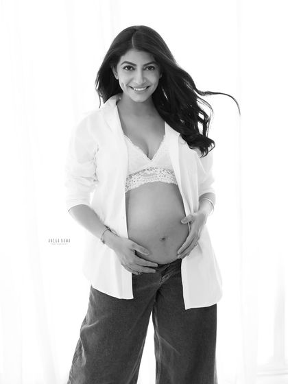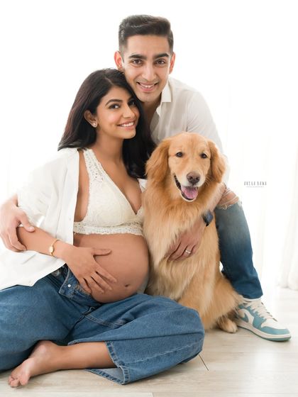 I offer maternity photoshoots in my Gurgaon studio with flexible styling, relaxed sessions, and options for solo, couple, family, or pets so your story comes through naturally.