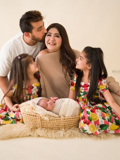 I photograph newborns and babies in my Gurgaon studio with safe posing, soft props, and family portraits, capturing milestones like first birthdays and twins.