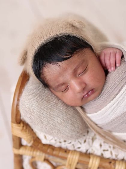My newborn sessions are quiet and calm. I focus on fine art baby portraits that feel timeless. I style your baby with soft wraps, delicate headbands, and cozy props - from baskets to miniature beds. Safety is a big deal for me, so I pay close attention to newborn posing safety and keep your baby comfortable throughout. I’ve also got experience photographing twins and their sweet bond, which is always a highlight.