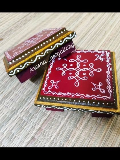 - Pooja Chowkis: Low wooden stools painted with Kolam or Rangoli designs, suitable for holding idols.