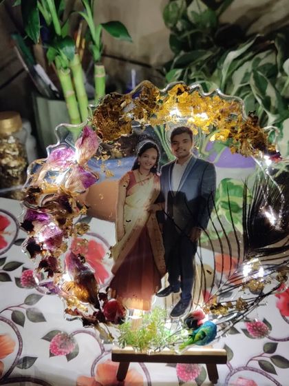 - Memory Keepsake Art: I love making custom resin photo frames. Your special photo floats inside clear resin, decorated with real dried flowers, gold flakes, or peacock feathers. Some glow with hidden fairy lights. Each comes with a simple easel.