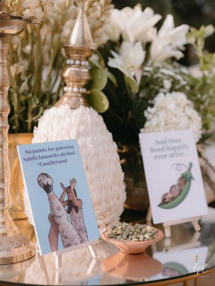 Your story is in the small things. We specialize in weaving your personality into every detail, from custom stoles printed with the groom's photos and witty meme-inspired menus, to personalized favors and welcome signs that share your inside jokes with all your guests.