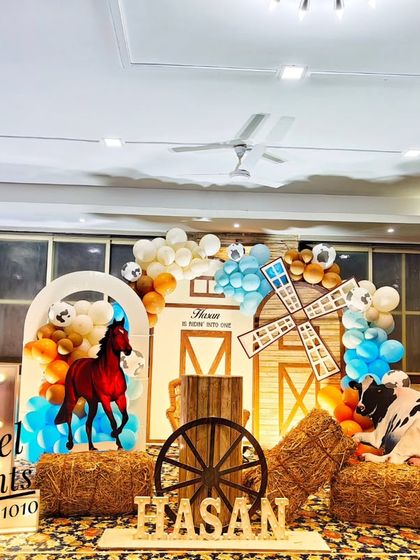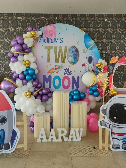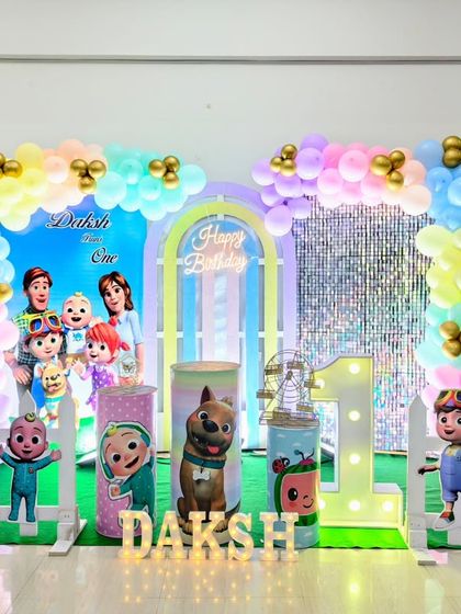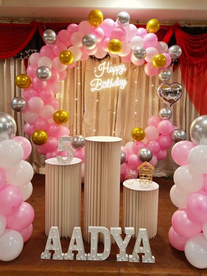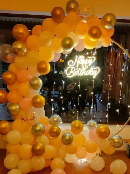 We set up birthday party decorations for any theme you choose, with custom balloon art, backdrops, props, and lighting, all arranged at your venue in Bangalore.