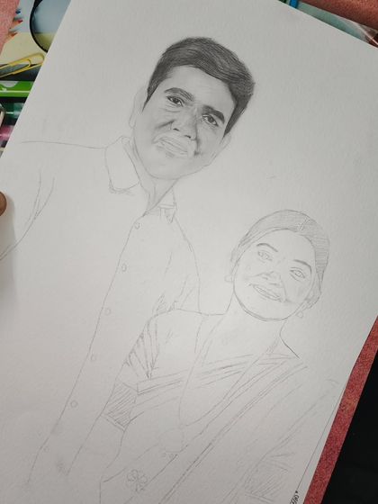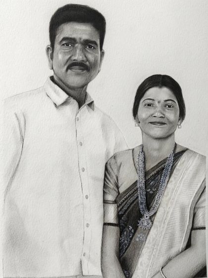 Handmade Portraits & Sketches - I make realistic couple portraits, family sketches, and personal drawings—mostly black-and-white, using graphite and charcoal.