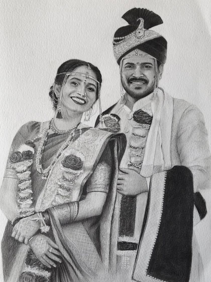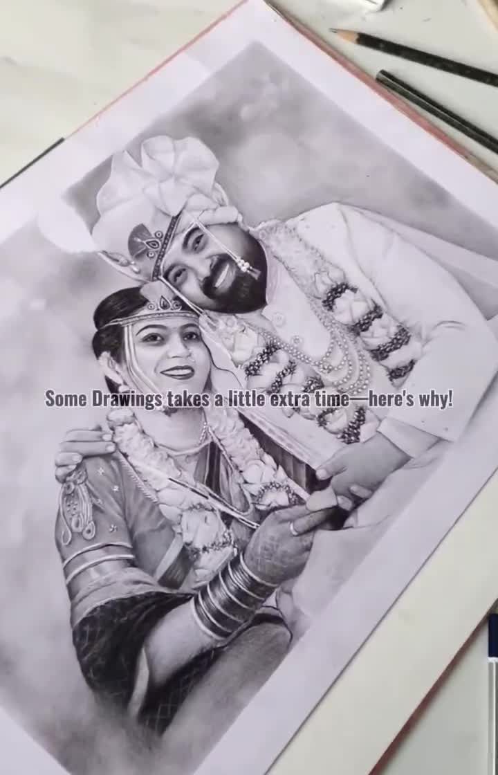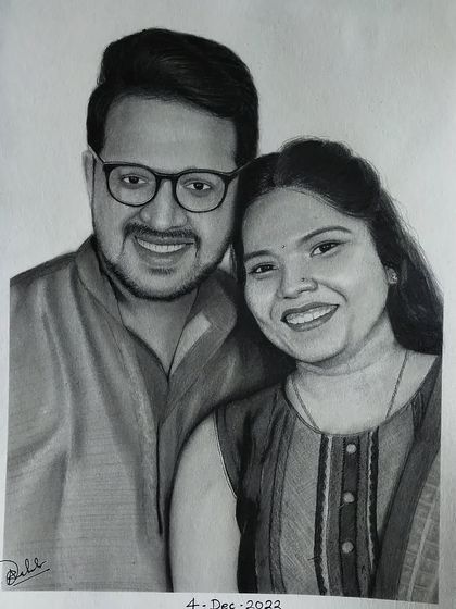 This collection features my most requested service: custom couple and wedding portraits. I focus on capturing the unique bond and details from your photos, using a blend of graphite and charcoal for a realistic finish that celebrates your special moments.