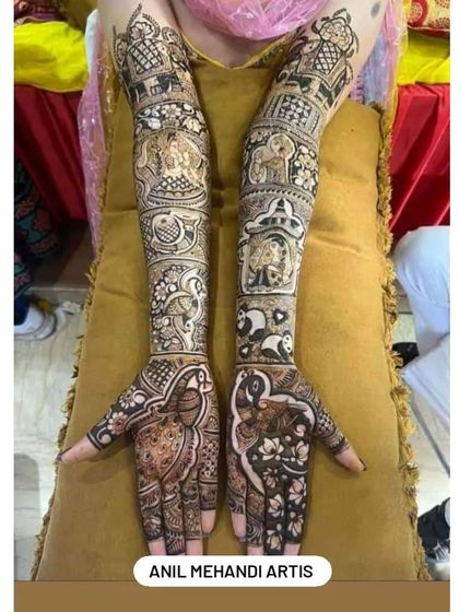 Namaste, I’m Anil, mehandi artist from Navi Mumbai - but you’ll find me everywhere, Delhi se lekar Jaipur tak (from Delhi to Jaipur). Making brides smile is my real kaam (work). If you want colourful mehendi or something trending, I love trying new things. My work is pura passion (full passion). Jai shree krishna radhe radhe, always.
