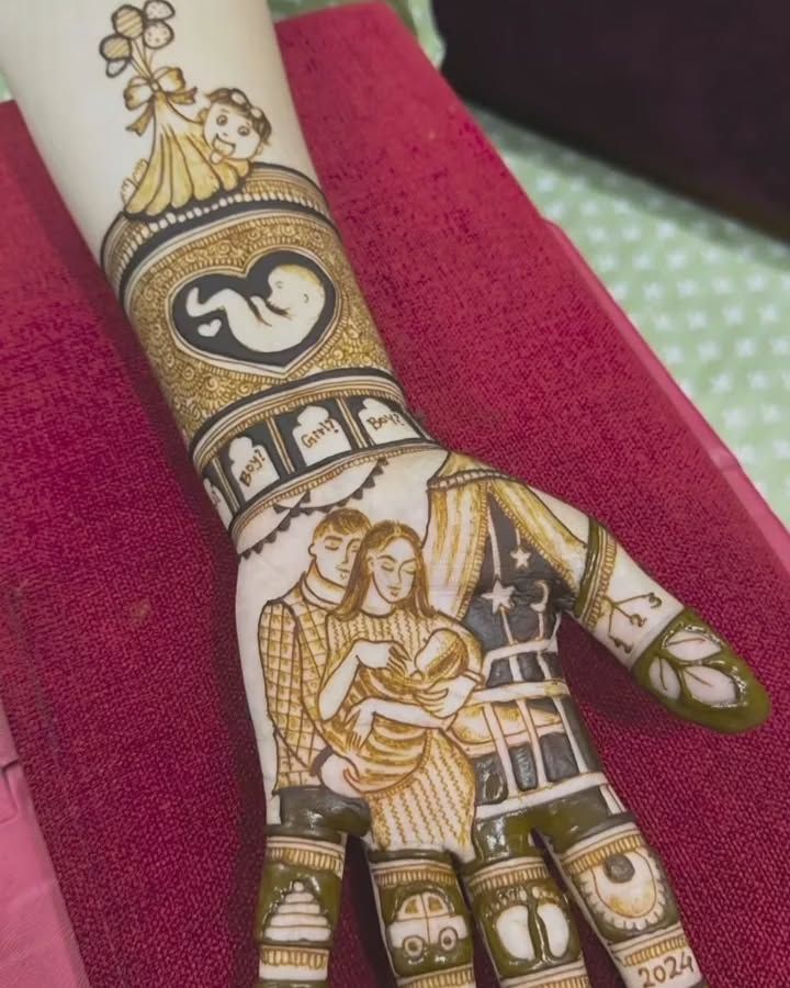 Celebrate the upcoming arrival of your little one with a custom baby shower mehandi. I can draw anything from cute baby prams and family portraits to the due date calendar. These designs are a beautiful way to mark this special milestone.