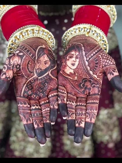 I love adding personal touches - your initials hidden in the pattern, wedding date, a small portrait of you two, or even a baraat scene if you want. If you have a special memory or quote, I work it into your mehndi so your hands tell your own story. Custom bridal mehndi designs are my thing.