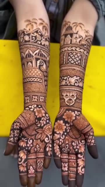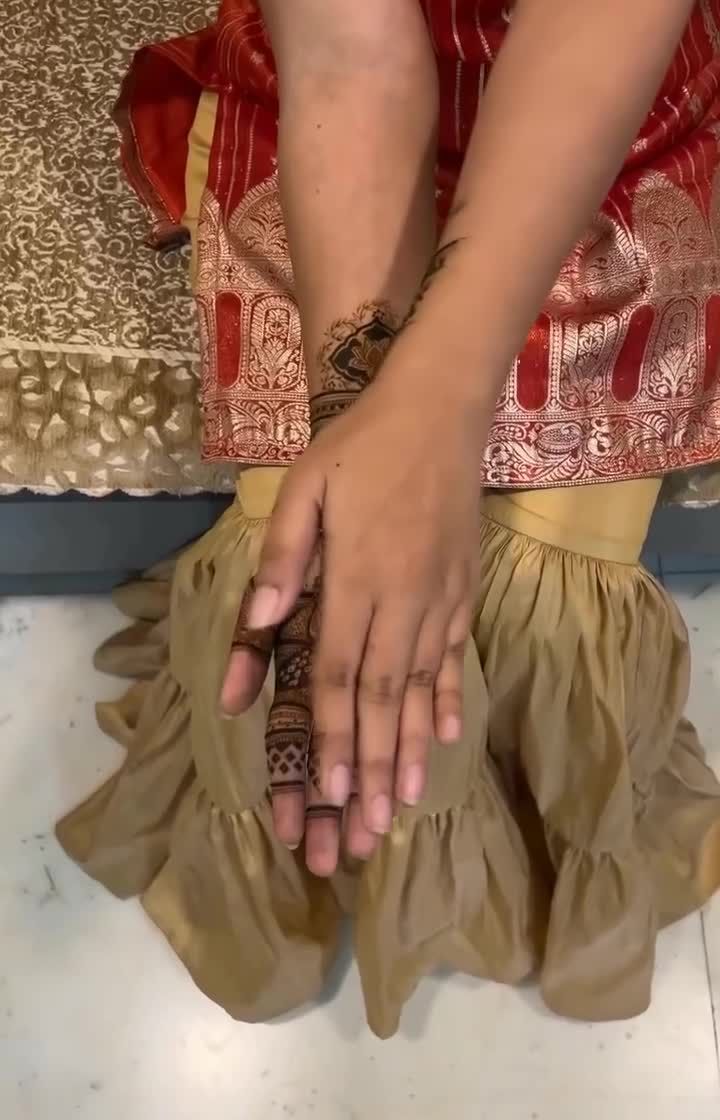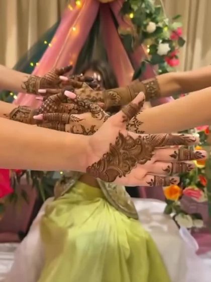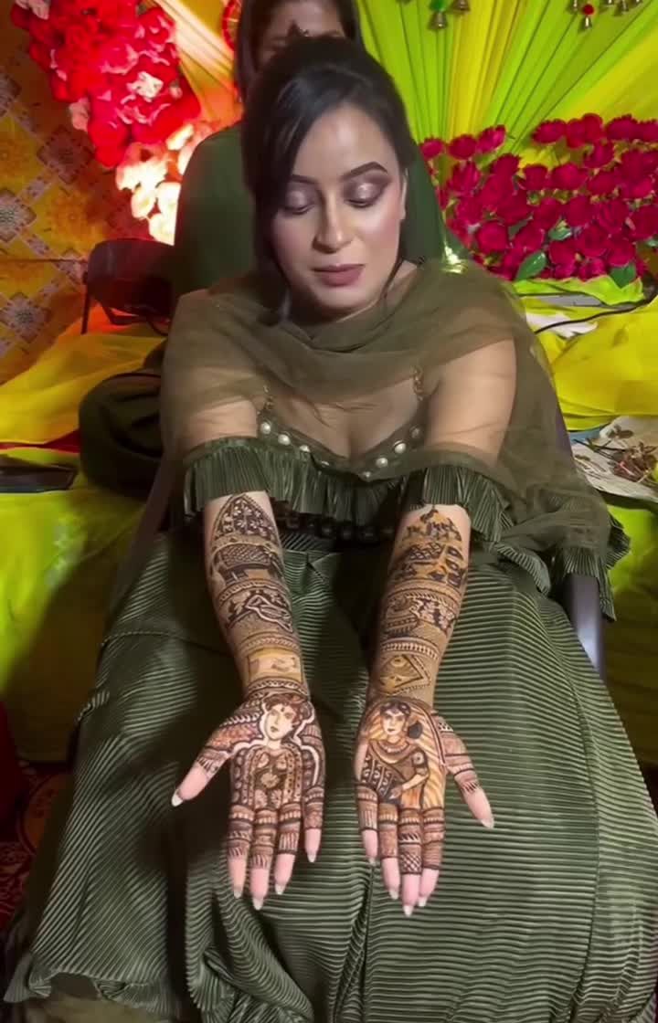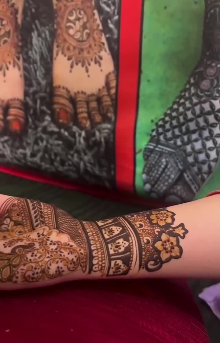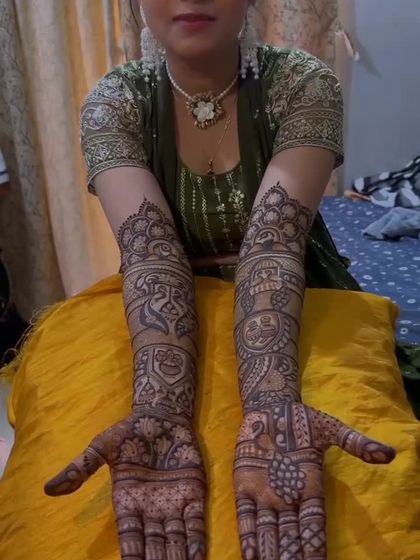 I specialize in creating personalized bridal mehndi that tells your unique love story. I can weave your portraits, special dates, initials, or even scenes from your journey together into the design, making your hands a canvas for your memories.