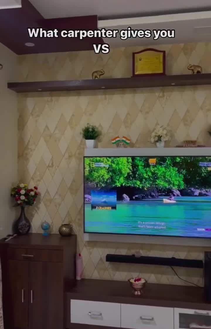 Your living room is where you relax and entertain. I design custom TV units, partitions, and false ceilings that tie the whole room together. I use materials like marble finish panels, wooden louvers, and integrated LED lighting to create a space you love coming home to.
