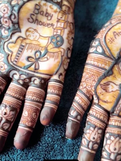 I’m all about designs that mean something to you. For engagements, I can add your initials, names, or even a date that matters. If you want your love story in your mehendi, just say the word. For baby showers, I go for cute and playful - think tiny baby feet, a sleeping baby, or even a little calendar for your due month. Festivals like Karwa Chauth or Diwali? I can do scenes of waiting for the moon, or add something your partner loves, like cricket. Saal Mubarak! (Happy New Year) is always part of the vibe.