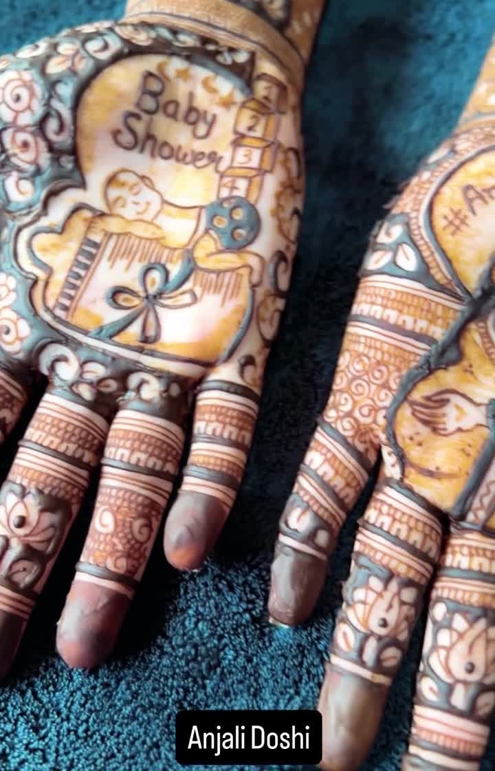 A baby shower is a time of pure joy, and I love creating mehendi that captures that excitement. I can design anything from cute baby feet and toys to personalized portraits of the parents-to-be and calendars marking the arrival month.