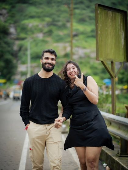 I shoot pre-wedding and couple photos and videos in real Mumbai locations, keeping it candid, cinematic, and easy without studio poses.