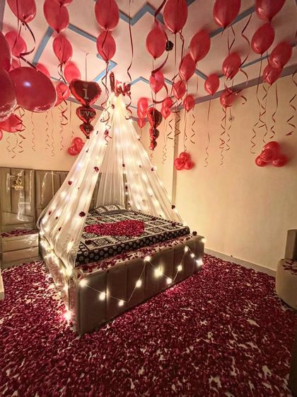 I create beautiful and intimate settings for anniversaries, proposals, or just a special surprise. This includes heart-shaped balloon arches, romantic bedroom decor with fairy lights and flower petals, and elegant backdrops.