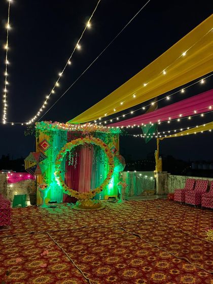 I design beautiful and festive decor for pre-wedding functions like Haldi, Mehndi, and Roka ceremonies. I use a mix of flowers, colorful drapes, and custom lighting to create the perfect celebratory atmosphere.
