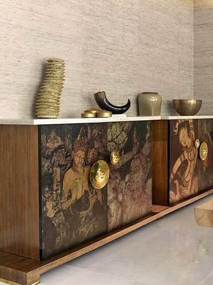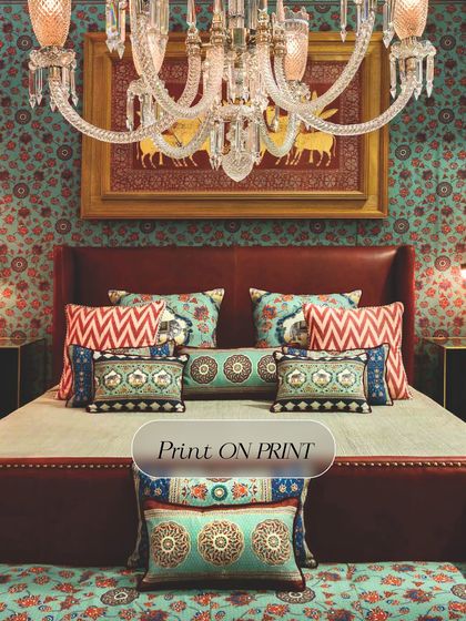 I offer digital wallpapers that can be tailored to your space and story. If you want something tactile, I also make hand-embroidered tapestry art with skilled karigars. The designs are not just for walls - I can apply them to ceilings, furniture, anything you want.