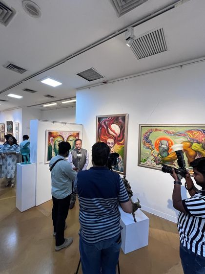Art, for me, is all about connection - the kind of vibe you get when everyone’s in the moment. I love sharing that with people, whether I’m up front with a brush or guiding you through a group art workshop. Sab kuch live hota hai, fresh energy se. (Everything happens live, with fresh energy.) The painting, the crowd, the laughter - it all gets into the final piece.