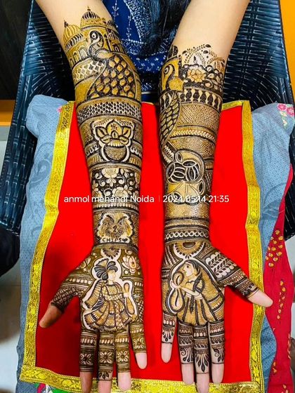 Namaste, I’m Anmol – mehendi artist from Noida. Main jyada baatein nahi karta (I don't talk much), kaam bolta hai mera. Brides get happy, I get happy. Sujata tried my demo, got impressed, booked me. Another bride found me online, loved my designs, said 'no disappointment.' Client ki smile hi meri salary hai (client’s smile is my real pay). Bas, satisfy client – that’s my goal.