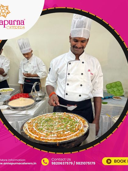 We cater pure vegetarian and Satvik food for all events, offer over 100 dishes including live counters, and have 36 years of experience in reliable service and presentation.