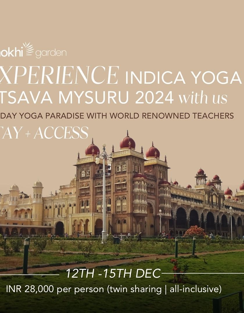 I curate special packages for major yoga festivals so you can fully immerse yourself in the experience without worrying about the details. This offering for the Indica Mysuru Yoga Utsava provides an all-inclusive package with accommodation and full access to the festival. It is a chance to learn from over 50 renowned gurus and connect with a global community.