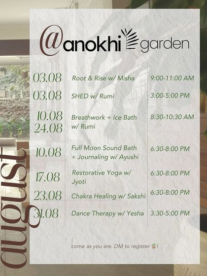 We’re Anokhi Garden, born outta Mysore roots, planted in Mumbai’s hustle. We wanted a spot where folks could just chill, breathe, and eat good food. Not just a studio or a cafe, more like a garden—where you grow, hang out, or sip coffee solo. Sometimes you’ll find us hosting soulful gatherings, sometimes it’s just quiet healing vibes. Srinatha Sir from Mysore drops by, and the vegan french toast? Pure comfort. Come as you are, find your corner.